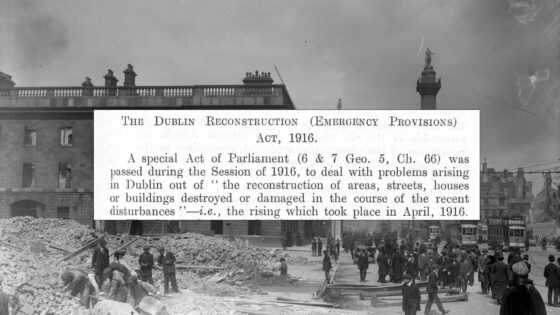 Portions of Dublin were in shambles. Local officials worked on reconstruction, and referred to the Rising as “the recent disturbances.”