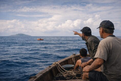 It grew slowly, resolving into the island of Marie-Galante in the Caribbean. Fishing boats moved along its coastline, small shapes against the shore. Callahan lacked the strength to signal effectively, but the raft drifted close enough for fishermen to notice it.
