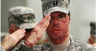 Sam Brown, Injured by an IED: His disfigured face marked as “Sensitive Content”